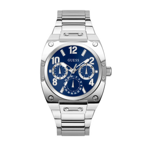 Affirmez votre style avec la montre Guess GW0624G1, une pièce au design audacieux et contemporain. Son cadran bleu intense est rehaussé par des index et chiffres argentés surdimensionnés, offrant une lisibilité parfaite et un look résolument masculin. Dotée de trois sous-cadrans multifonctionnels (24h, jour, date), cette montre incarne à la fois l’élégance urbaine et la performance. Son bracelet en acier inoxydable poli ajoute une touche de robustesse et de sophistication, idéale pour toutes les occasions.